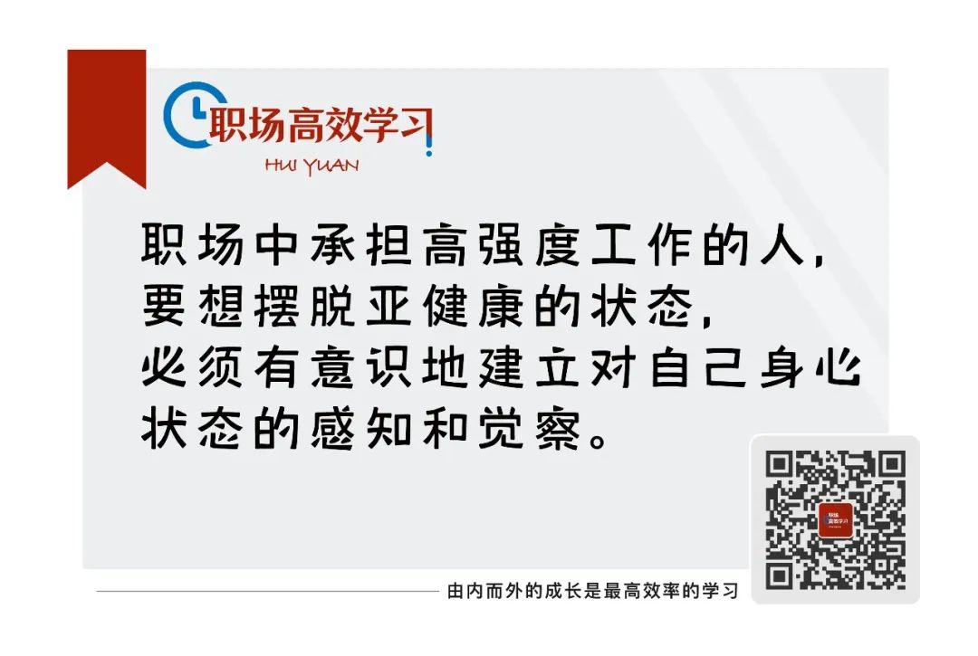 职场中承担高强度工作的人,要想摆脱亚健康的状态,必须有意识地建立对自己身心状态的感知和觉察。