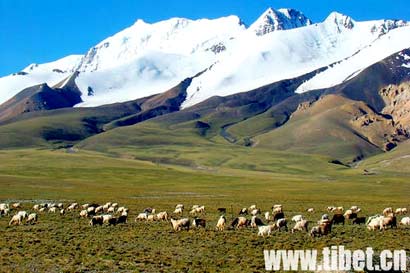 高原是动物的乐园。阿里高原河湖众多,草原辽阔,气候独特,繁衍着各种各样的珍禽异兽,是我国一些特有动物、珍贵动物的产地。宁静、明朗、辽阔无垠的雪域高原上,有般的羊群,黑缎般的牦牛,枣红色的骏马,还有那一只只长着长长黑色犄角的羚羊。它们或悠闲咀嚼着绿草,或戏闹奔逐,或昂起头颅凝视着远方,对从身边而过隆隆作响的,对走近的人群,没有一丝怯懦。与之遥相呼应的是,藏族牧民帐房里飘出的缕缕青烟,与天上白云连成一片,给高原平添了几分安宁祥和。