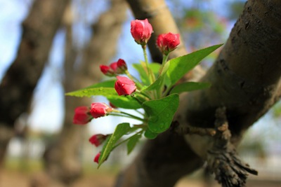 在回暖迅速的当下,海棠花竞相开放,正以最美丽的姿态迎接游人的到来。